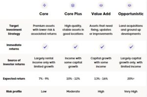 - Core Properties are typically the lowest risk of the strategies listed here and are primarily targeted for existing income.