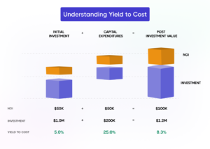 This example above demonstrates how Yield to Cost takes both the current and future potential yields into account, providing a more holistic view of the potential return on investment. This is why often Value-Add investments can trade at lower capitalization rates, as buyers know that the yield of the asset can be improved through a value-add strategy.